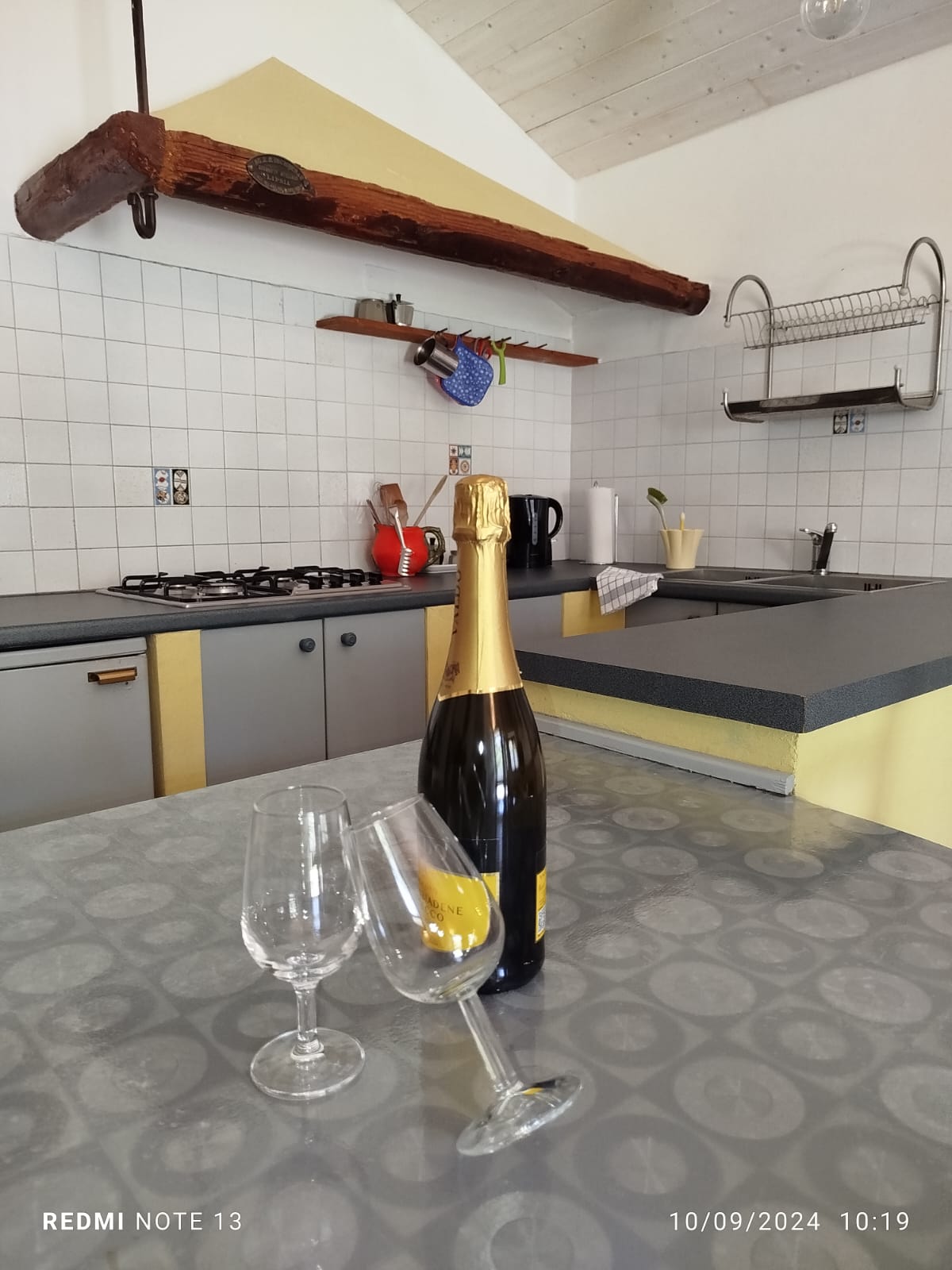 Appartamento sviluppato tutto al piano terra con ampio portico esterno, cucina a gas, forno elettrico, forno microonde, lavastoviglie, sodastream per produzione di acqua frizzante. In dotazione arredo tavola e cucina e detersivi vari.